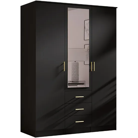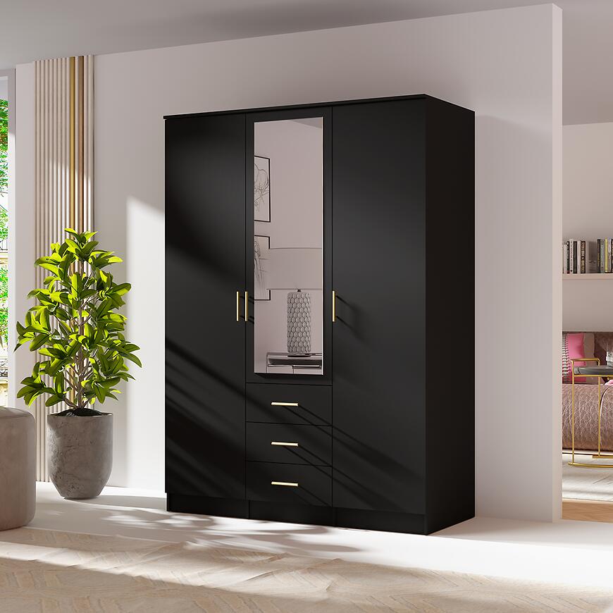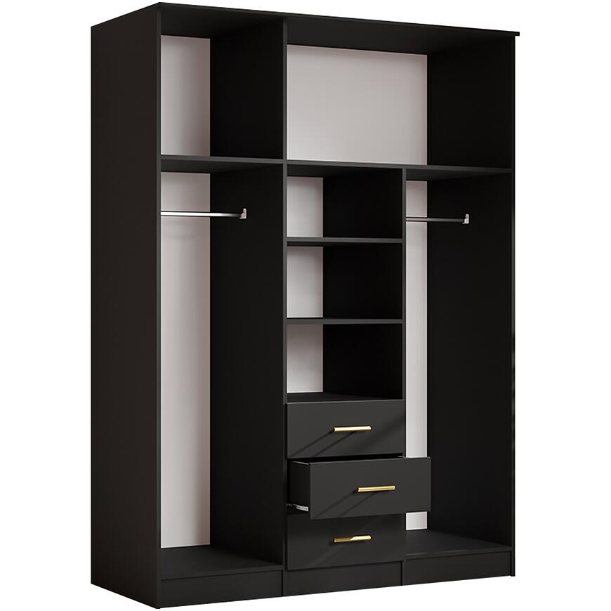 Szafa 3D czarna 150 cm – nowoczesna szafa trzydrzwiowa z lustrem do sypialni
