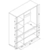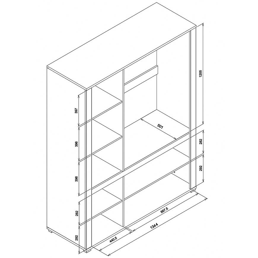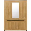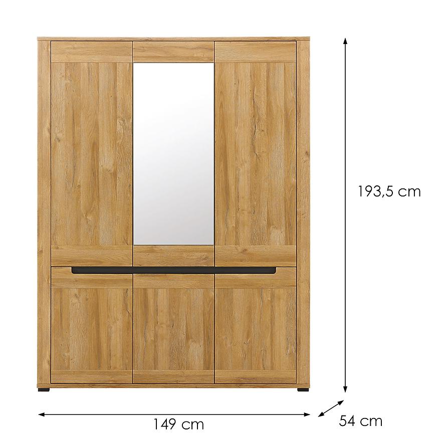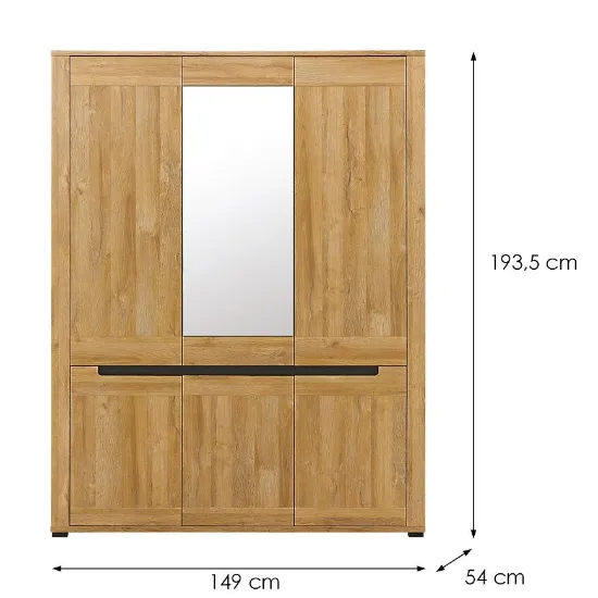 Wewnątrz znajduje się praktyczny układ półek, umożliwiający wygodne przechowywanie odzieży oraz innych akcesoriów. Korpus wykonany z laminowanej płyty wiórowej zapewnia trwałość i odporność na codzienne użytkowanie.