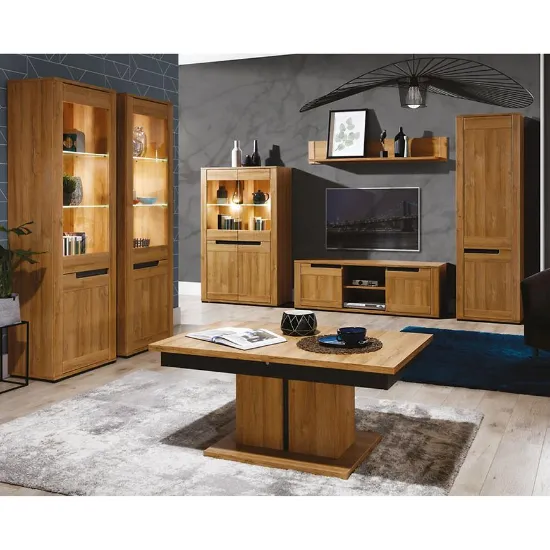 Meble YORK zostały wykonane z trwałej płyty wiórowej laminowanej, dzięki czemu cechują się wysoką odpornością na uszkodzenia oraz łatwością w pielęgnacji. W skład kolekcji wchodzą różnorodne elementy, które pozwalają na kompleksowe urządzenie zarówno pokoju dziennego, jak i sypialni. Do dyspozycji są funkcjonalne komody z pojemnymi szufladami i półkami, elegancka witryna oraz kredens, które można dodatkowo wyposażyć w energooszczędne oświetlenie LED za dopłatą.
