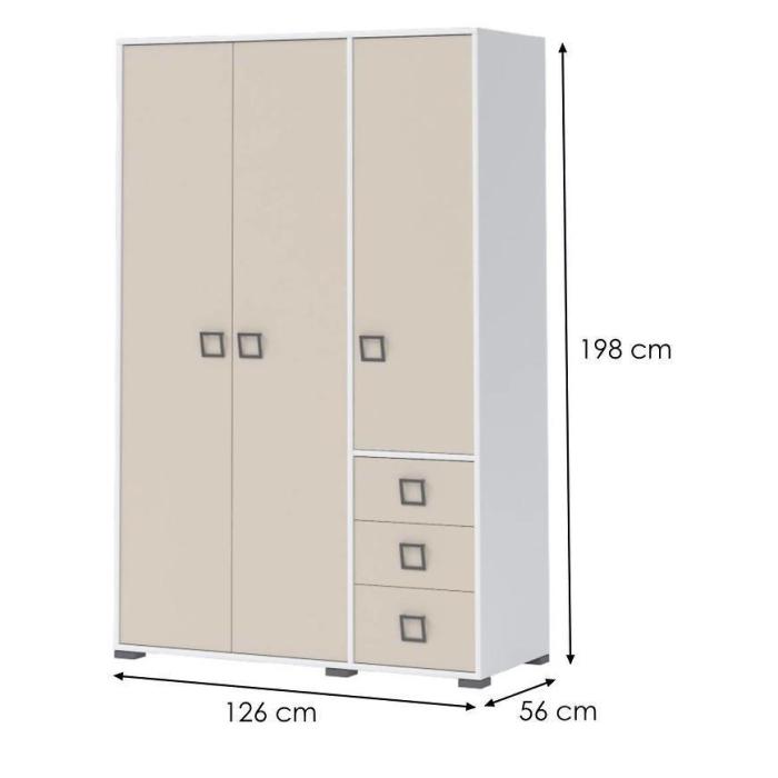 Szafa KIKI to doskonała propozycja do pokoju młodzieżowego lub dziecięcego, a także do sypialni, pokoju dziennego i innych pomieszczeń np. do przedpokoju. Całość dostępna w kolorze biały/sand, korpus i fronty w matowym wykończeniu. Szafa posiada drzwi uchylne, które pasują zarówno do wnętrz tradycyjnych i nowoczesnych. Dodaje całej aranżacji charakteru. Szeroki wybór szaf w ofercie pozwala dopasować mebel do wymagających aranżacji w zależności od potrzeb. Warto więc zapoznać się z całą ofertą i wybrać swoją wymarzoną szafę!