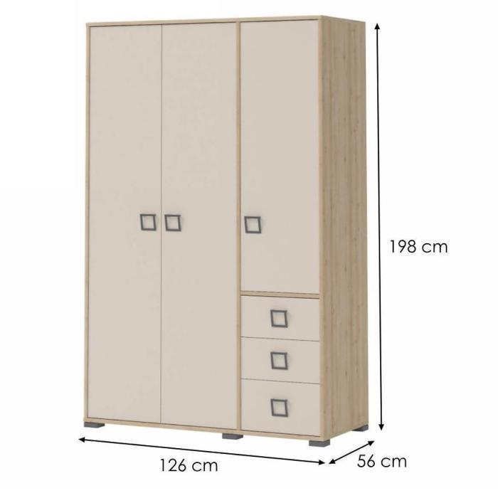 Szafa KIKI to doskonała propozycja do pokoju młodzieżowego lub dziecięcego, a także do sypialni, pokoju dziennego i innych pomieszczeń np. do przedpokoju. Całość dostępna w kolorze beech/sand, korpus i fronty w matowym wykończeniu. Szafa posiada drzwi uchylne, które pasują zarówno do wnętrz tradycyjnych i nowoczesnych. Dodaje całej aranżacji charakteru. Szeroki wybór szaf w ofercie pozwala dopasować mebel do wymagających aranżacji w zależności od potrzeb. Warto więc zapoznać się z całą ofertą i wybrać swoją wymarzoną szafę!