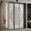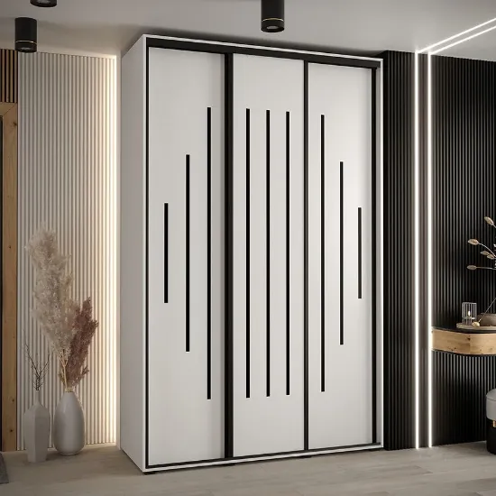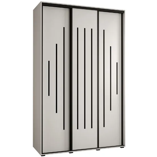 Szafa Canaris 12 w kolorze biały/czarny. Szafa trzydrzwiowa z drzwiami przesuwnymi wykonana z płyty wiórowej laminowanej. Szafa charakteryzuje się nowoczesnym stylem i funkcjonalnością. Fronty oraz korpus szafy w matowym wykończeniu tworzą modny minimalistyczny wygląd. Mebel przeznaczony jest do samodzielnego montażu.