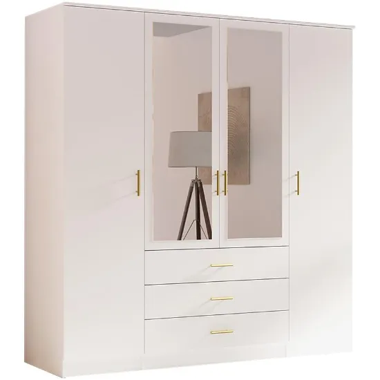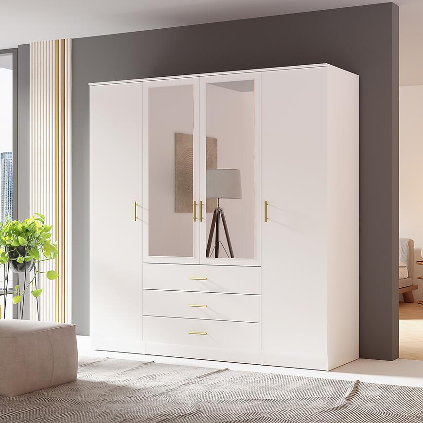 Szafa 4d biała z lustrem 200 cm – nowoczesna szafa do sypialni i garderoby