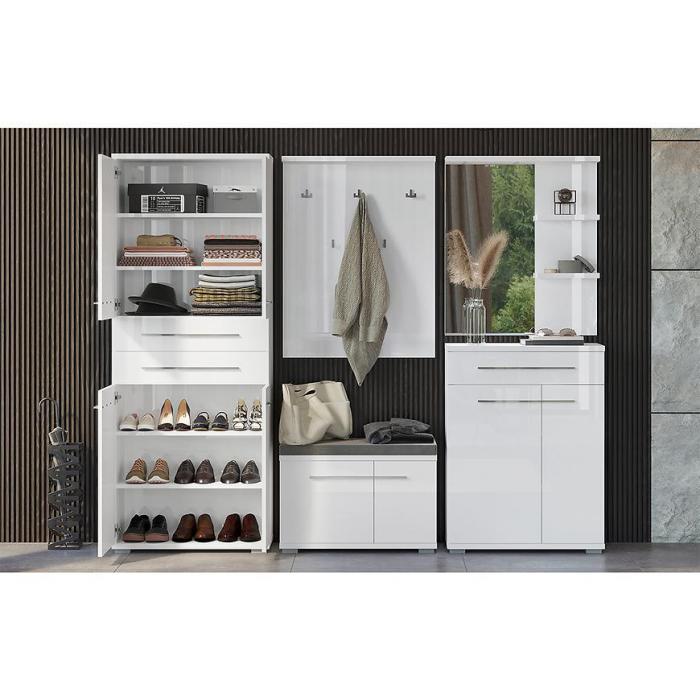 Szafa z drzwiami uchylnymi Piano to doskonały wybór do garderoby, przedpokoju, salonu czy sypialni. Kolor frontów i korpusu sprawiają, że wpasuje się w większość aranżacji. Jej wnętrze jest pojemne i pomieści zarówno ubrania jak i inne akcesoria. Szafa jest kilkudrzwiowa.