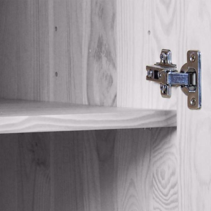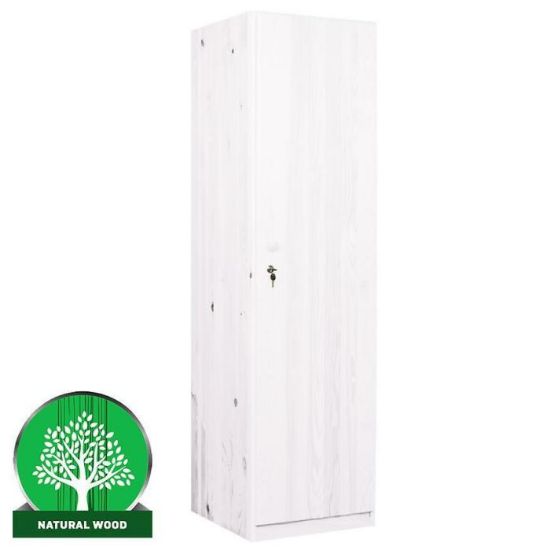 Szafa uchylna z kolekcji Eko to propozycja do pokoju dziennego, ale znajdzie swoje miejsce również w innym pomieszczeniu, jak na przykład - przedpokój czy garderobie. Materiał wykonania to drzewo sosnowe. Szafa posiada półki, drewniane uchwyty oraz zamek na kluczyk. Nowoczesny styl mebli wpadnie do gustu każdemu, kto poszukuje eleganckiego, klasycznego, a zarazem nowoczesnego umeblowania. Idealnie wpasuje się w większość aranżacji. Przeznaczona do samodzielnego montażu.