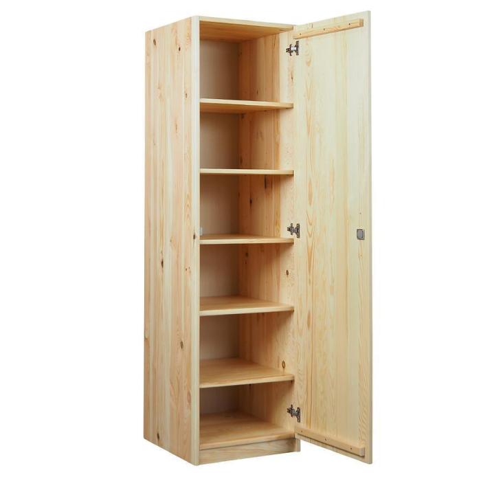Szafa uchylna z kolekcji Eko to propozycja do pokoju dziennego, ale znajdzie swoje miejsce również w innym pomieszczeniu, jak na przykład - przedpokój czy garderobie. Materiał wykonania to drzewo sosnowe. Szafa posiada półki, drewniane uchwyty oraz zamek na kluczyk. Nowoczesny styl mebli wpadnie do gustu każdemu, kto poszukuje eleganckiego, klasycznego, a zarazem nowoczesnego umeblowania. Idealnie wpasuje się w większość aranżacji. Przeznaczona do samodzielnego montażu.