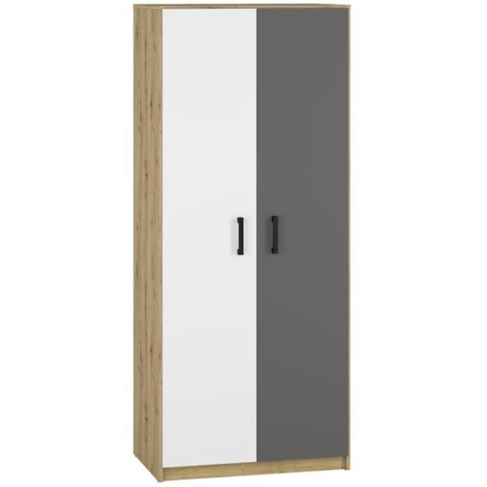 Wygląd szafy Fini zachwyci każdego zwolennika nowoczesnego, a zarazem uniwersalnego stylu. Szafa posiada wystarczającą ilość miejsca na ubrania oraz na inne przedmioty. Jest to niezbędny element wyposażenia w każdym domu, garderobie czy przedpokoju. Materiał wykonania to płyta wiórowa laminowana.
