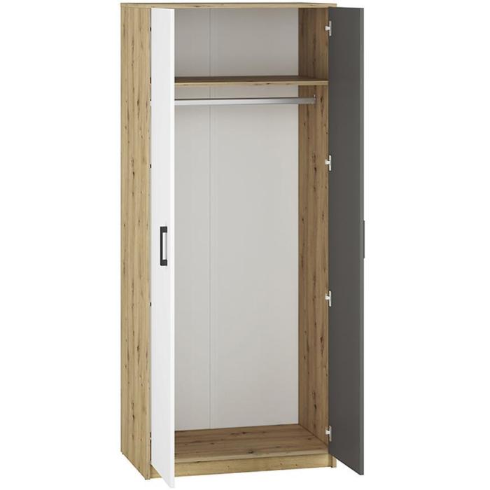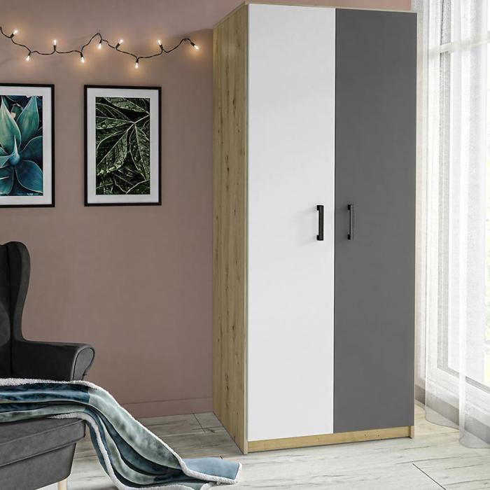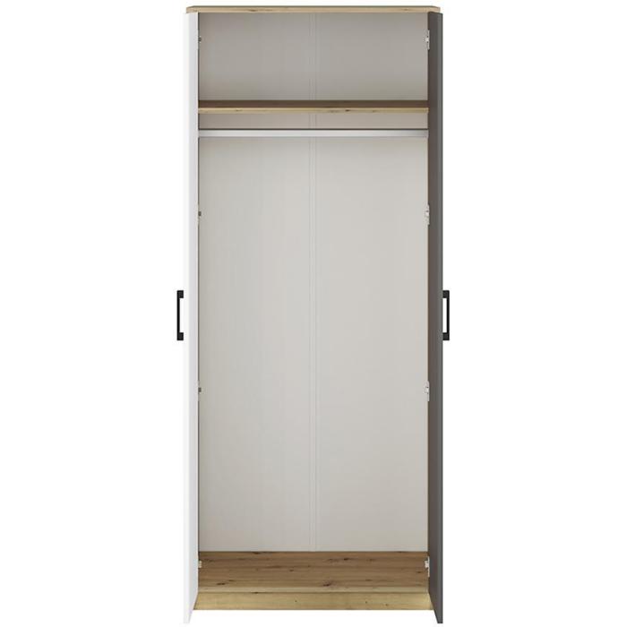 Szafa z drzwiami uchylnymi Fini to doskonały wybór do garderoby, przedpokoju, salonu czy sypialni. Kolor frontów i korpusu sprawiają, że wpasuje się w większość aranżacji. Jej wnętrze jest pojemne i pomieści zarówno ubrania jak i inne akcesoria. Szafa jest 2-drzwiowa.