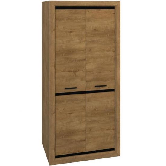 Szafa w kolorze dąb lefkas/czarny z serii Baltica to doskonała propozycja do pokoju dziennego, ale znajdzie swoje miejsce również w innym pomieszczeniu, jak na przykład - przedpokój czy garderobie, sypialni. Materiał wykonania to płyta meblowa. Szafa posiada półki, drążek na ubrania. Mebel będzie świetnym miejscem do wieszania ubrań, na buty lub inne domowe tekstylia. Nowoczesny styl mebli wpadnie do gustu każdemu, kto poszukuje eleganckiego, klasycznego, a zarazem nowoczesnego umeblowania. Idealnie wpasuje się w większość aranżacji. Szafa przeznaczona do samodzielnego montażu.