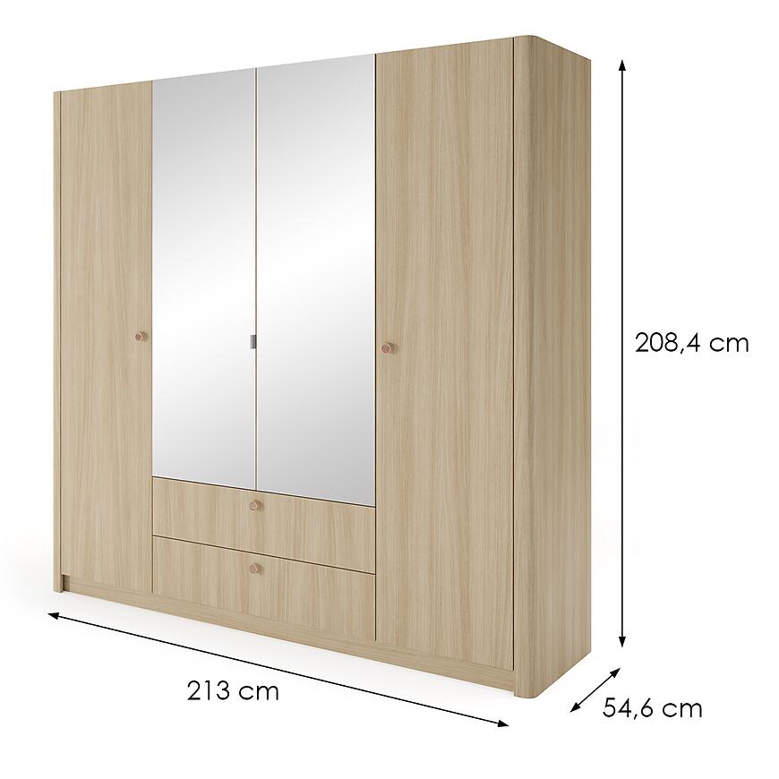 Szafa A 213 4d2s Viki to elegancki mebel o przemyślanej konstrukcji, która łączy dużą pojemność z estetyką naturalnego drewna. Matowe wykończenie i wbudowane lustro podkreślają nowoczesny charakter mebla, a solidna konstrukcja zapewnia trwałość i komfort codziennego użytkowania.