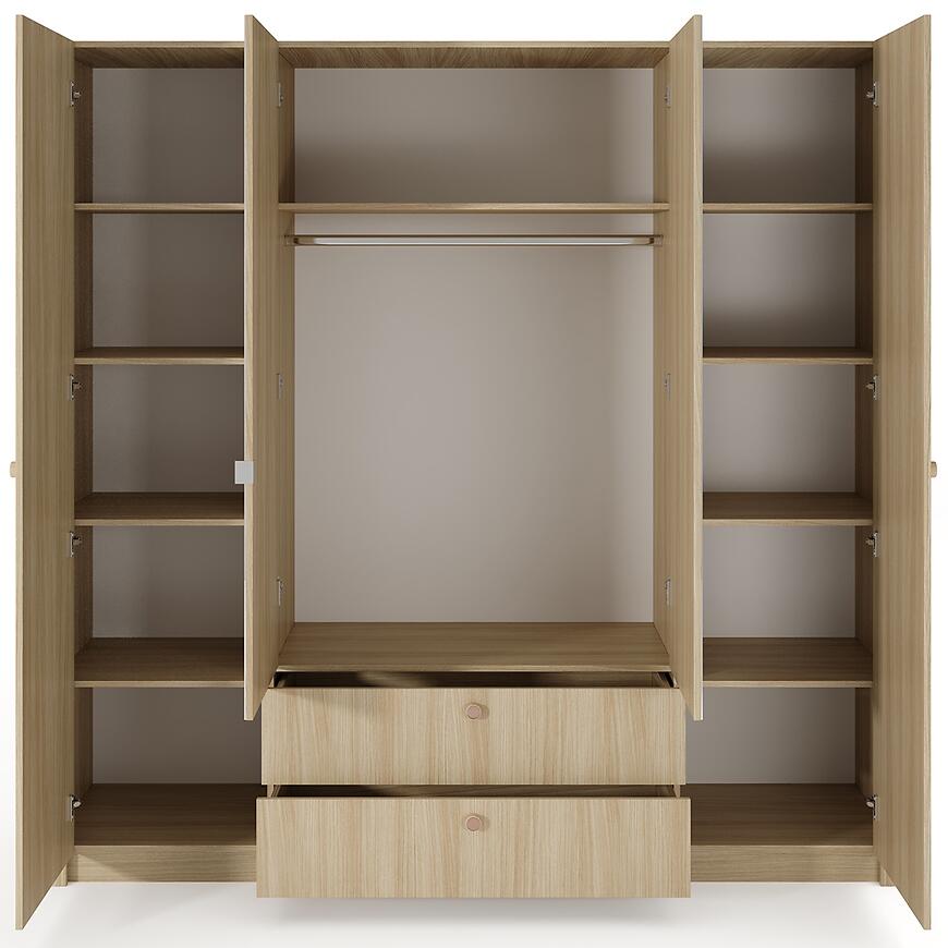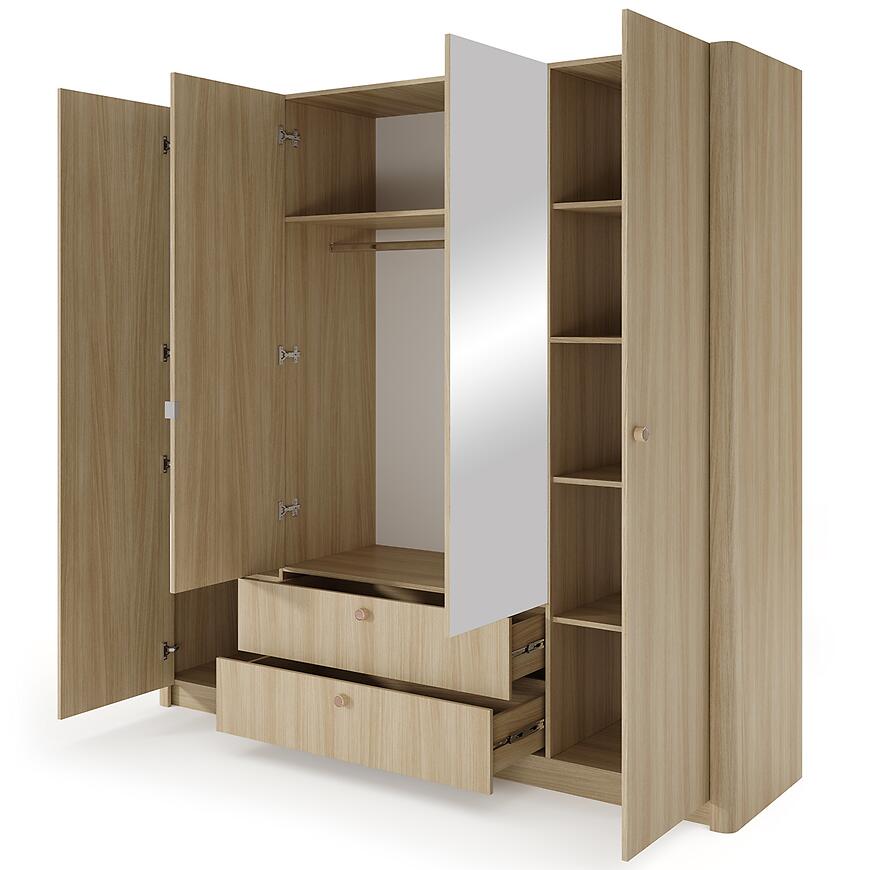 Szafa A 213 4d2s Viki łączy nowoczesny design z praktycznym układem wnętrza. Wyposażona w cztery drzwi i dwa szuflady, pozwala na wygodne przechowywanie ubrań, akcesoriów i innych przedmiotów. Duże drzwi otwierają przestrzeń do wnętrza, a wbudowane lustro dodaje funkcjonalności i optycznie powiększa przestrzeń.