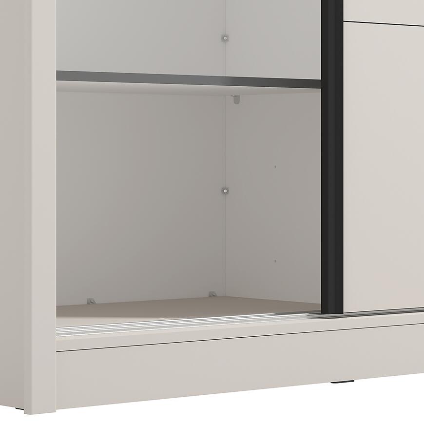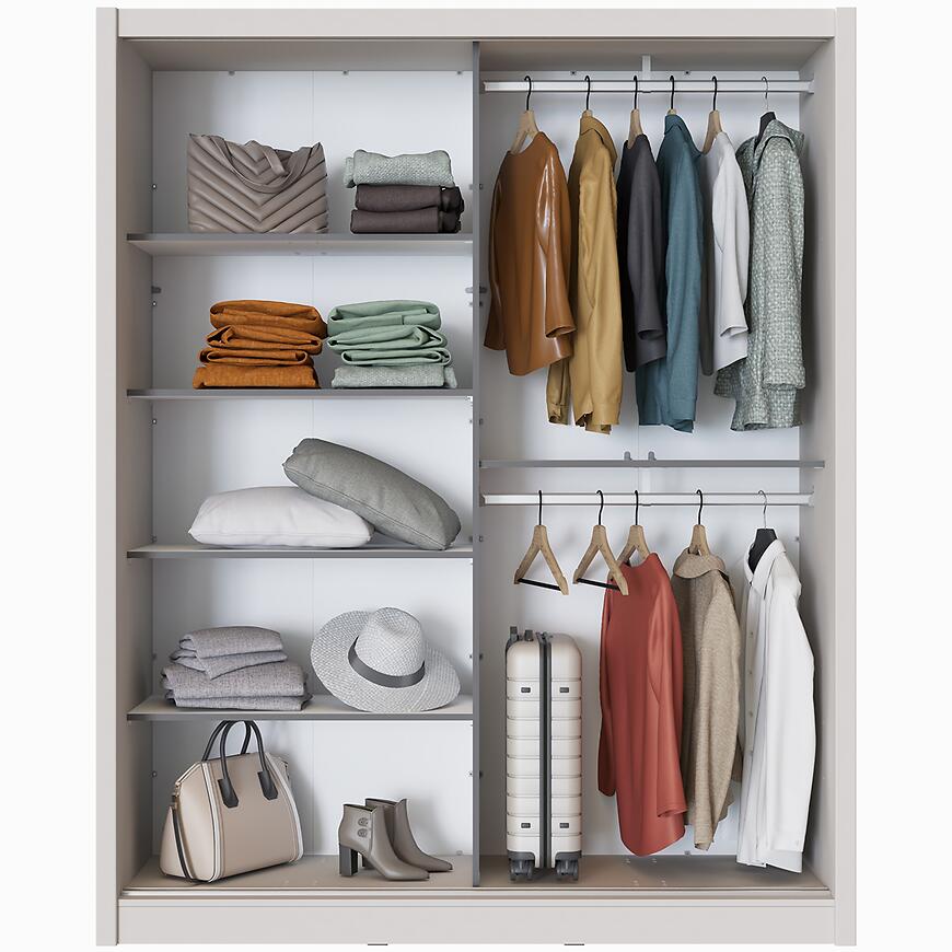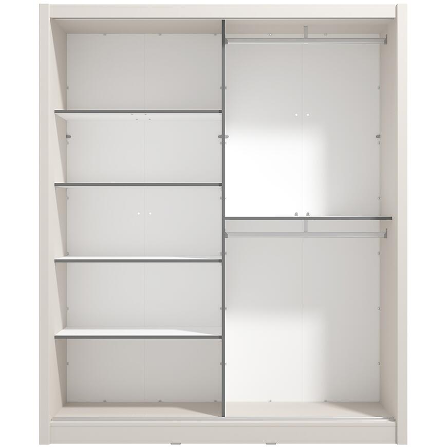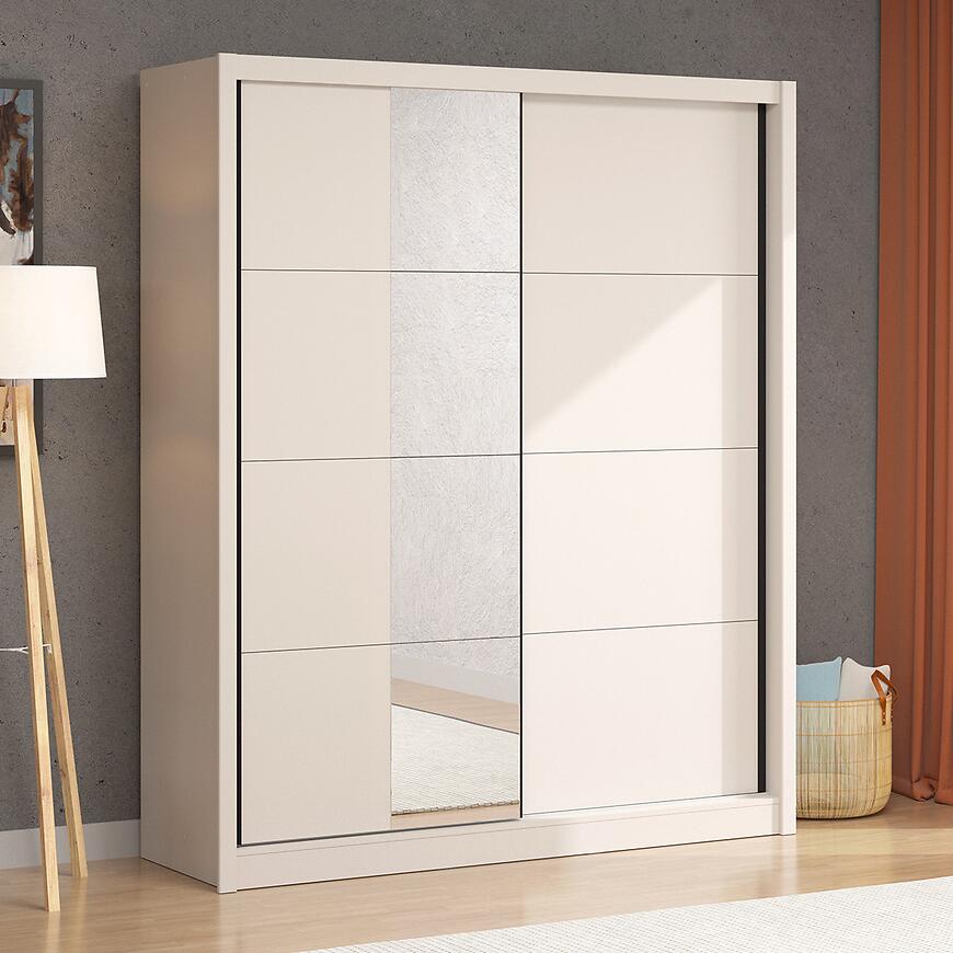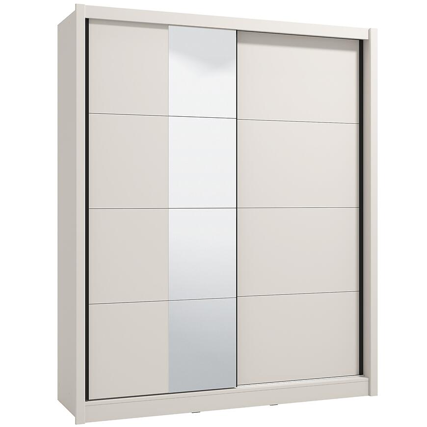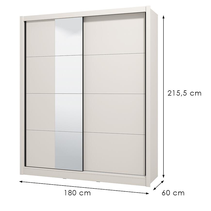 Nowoczesna szafa Albi 180 w eleganckim kaszmirowym wybarwieniu łączy styl i funkcjonalność, idealnie organizując przestrzeń w sypialni. Wyposażona w dwudrzwiowe drzwi przesuwne z praktycznym lustrem, umożliwia wygodne przechowywanie ubrań i dodatków. Wykonana z trwałej płyty wiórowej laminowanej, z matowym wykończeniem frontów i korpusu, zapewnia solidność i nowoczesny wygląd. Wysoka na 215,5 cm, szeroka 180 cm i głęboka 60 cm, doskonale wpisuje się w stylowe wnętrza, oferując przestrzeń do przechowywania z beżowym korpusem.