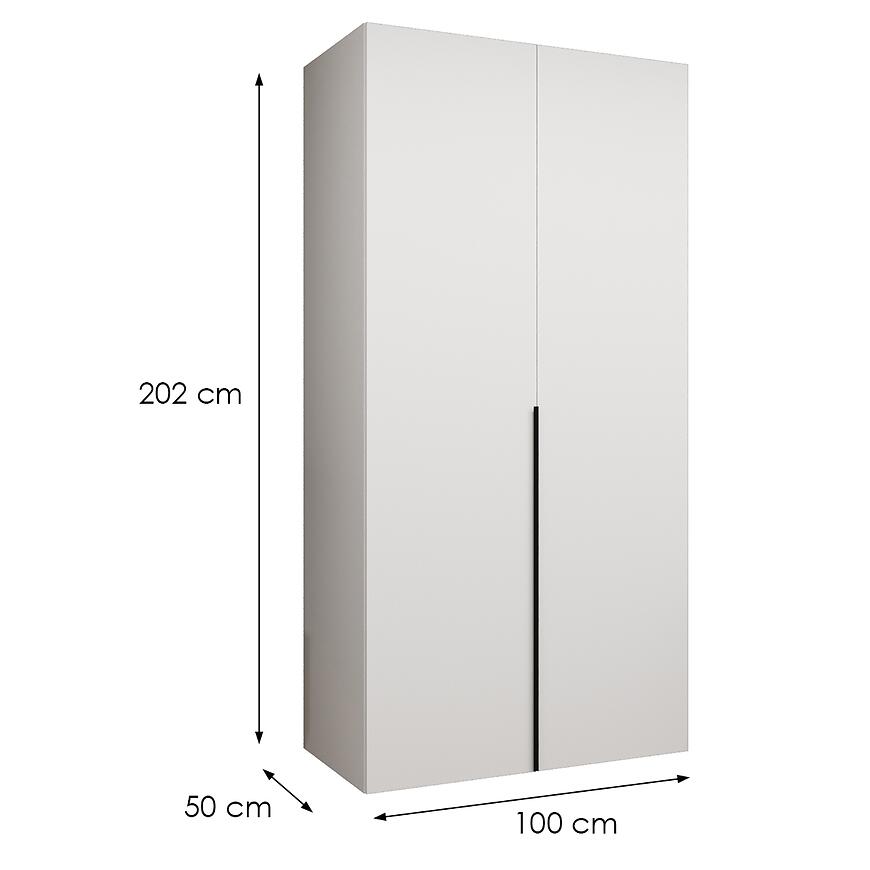 Szerokość 100 cm sprawia, że szafa Alicante I 100 oferuje wystarczającą ilość miejsca do przechowywania odzieży wiszącej i składanej, jednocześnie nie przytłaczając wnętrza. Wysokość 202 cm umożliwia pełne wykorzystanie przestrzeni pionowej, co jest szczególnie istotne w mniejszych pomieszczeniach. Głębokość 50 cm pozwala na komfortowe przechowywanie kurtek, płaszczy oraz innych elementów garderoby. Dwudrzwiowa konstrukcja zapewnia wygodny dostęp do wnętrza szafy, a klasyczne drzwi dobrze komponują się z resztą zabudowy meblowej. Brak oświetlenia wewnętrznego daje możliwość dopasowania dodatkowych źródeł światła według indywidualnych potrzeb użytkownika.
