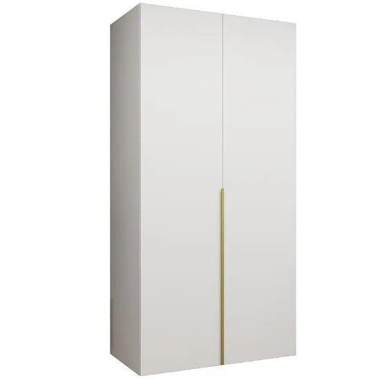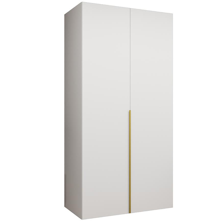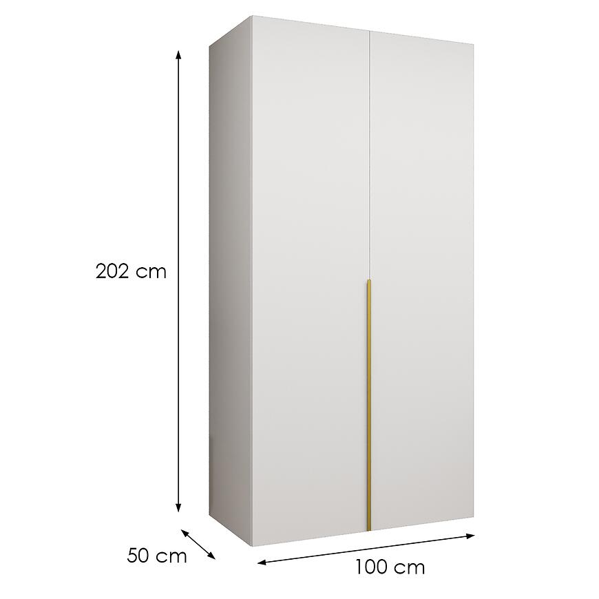 Szafa Alicante I 100 biały/złoty to propozycja dla osób poszukujących estetycznego i praktycznego mebla do przechowywania ubrań, dodatków oraz tekstyliów domowych. Model o szerokości 100 cm, wysokości 202 cm i głębokości 50 cm doskonale sprawdzi się zarówno w sypialni, jak i w przedpokoju, garderobie czy pokoju młodzieżowym. Prosta bryła, klasyczne drzwi oraz matowe wykończenie sprawiają, że szafa Alicante I 100 wpisuje się w aktualne trendy aranżacyjne i łatwo dopasowuje się do różnych stylów wnętrz, szczególnie nowoczesnych. Dzięki kompaktowym wymiarom jest to dobry wybór do mieszkań i domów, w których liczy się efektywne wykorzystanie przestrzeni.