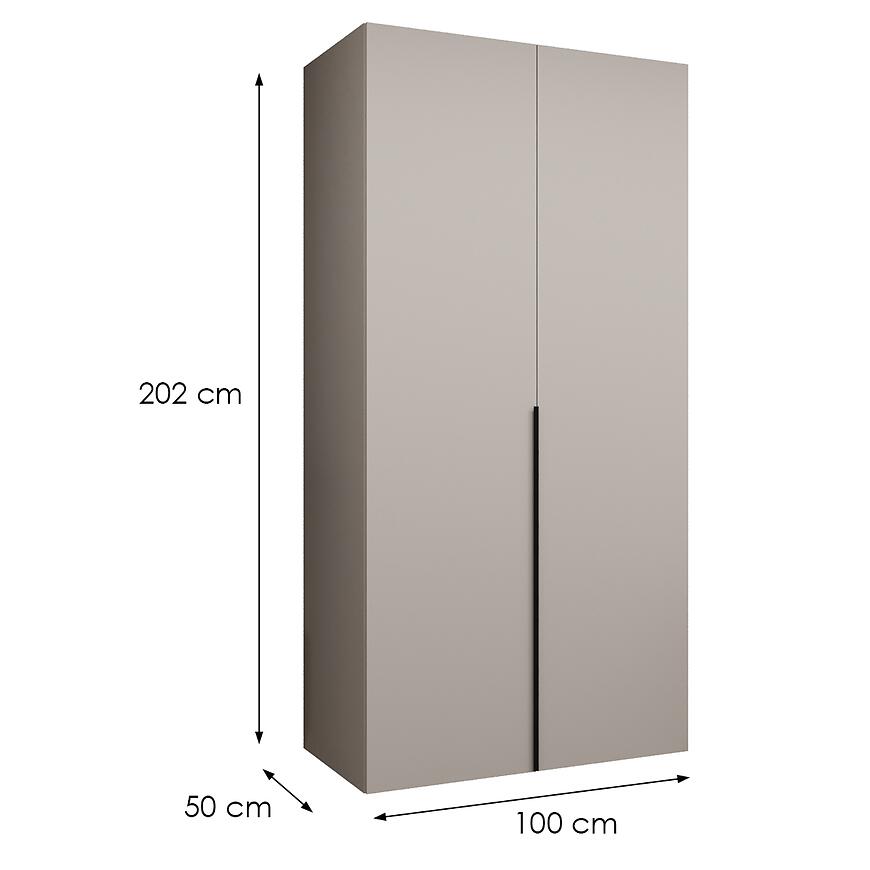 Szafa Alicante I 100 kaszmir/czarny to propozycja dla osób poszukujących estetycznego i praktycznego mebla do przechowywania ubrań, dodatków oraz tekstyliów domowych. Model o szerokości 100 cm, wysokości 202 cm i głębokości 50 cm doskonale sprawdzi się zarówno w sypialni, jak i w przedpokoju, garderobie czy pokoju młodzieżowym. Prosta bryła, klasyczne drzwi oraz matowe wykończenie sprawiają, że szafa Alicante I 100 wpisuje się w aktualne trendy aranżacyjne i łatwo dopasowuje się do różnych stylów wnętrz, szczególnie nowoczesnych. Dzięki kompaktowym wymiarom jest to dobry wybór do mieszkań i domów, w których liczy się efektywne wykorzystanie przestrzeni.