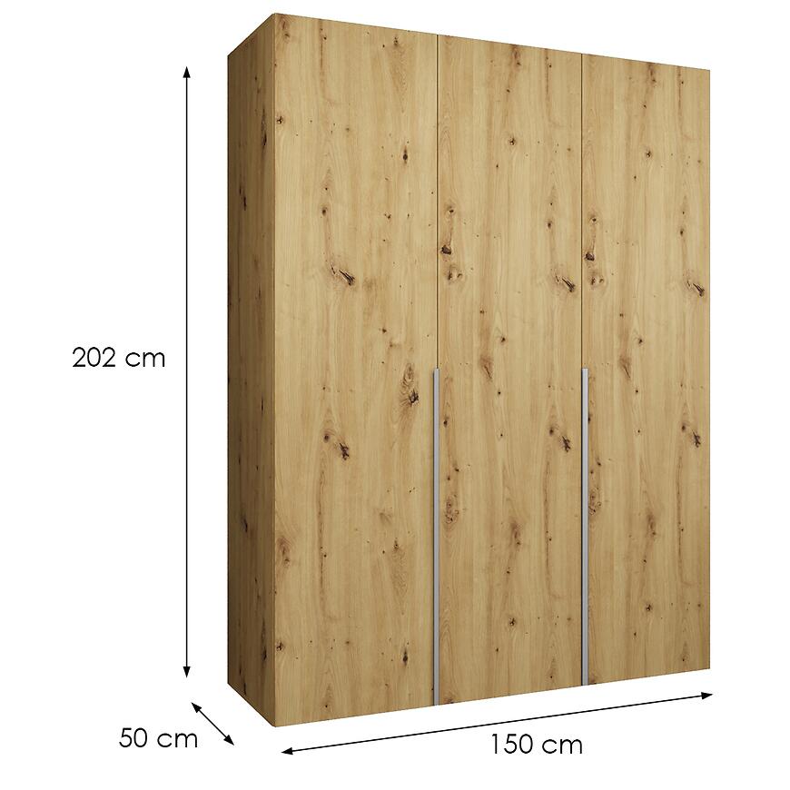 Szafa Alicante I 150 artisan/srebrny to propozycja dla osób poszukujących pojemnej i estetycznej szafy do sypialni, garderoby lub przedpokoju, która łączy nowoczesny styl z praktycznym układem. Model o szerokości 150 cm, wysokości 202 cm oraz głębokości 50 cm zapewnia optymalne wykorzystanie przestrzeni, nawet w pomieszczeniach o ograniczonym metrażu. Prosta bryła oraz klasyczne drzwi sprawiają, że szafa Alicante I 150 doskonale wpisuje się w aktualne trendy aranżacyjne, a jednocześnie pozostaje uniwersalnym wyborem do wielu typów wnętrz. To nowoczesna szafa bez lustra, zaprojektowana z myślą o osobach ceniących spójną estetykę i porządek.