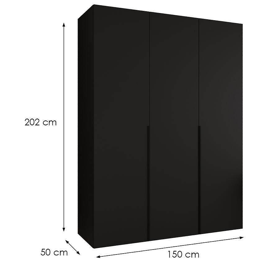 Szafa Alicante I 150 czarny to propozycja dla osób poszukujących pojemnej i estetycznej szafy do sypialni, garderoby lub przedpokoju, która łączy nowoczesny styl z praktycznym układem. Model o szerokości 150 cm, wysokości 202 cm oraz głębokości 50 cm zapewnia optymalne wykorzystanie przestrzeni, nawet w pomieszczeniach o ograniczonym metrażu. Prosta bryła oraz klasyczne drzwi sprawiają, że szafa Alicante I 150 doskonale wpisuje się w aktualne trendy aranżacyjne, a jednocześnie pozostaje uniwersalnym wyborem do wielu typów wnętrz. To nowoczesna szafa bez lustra, zaprojektowana z myślą o osobach ceniących spójną estetykę i porządek.
