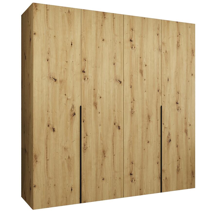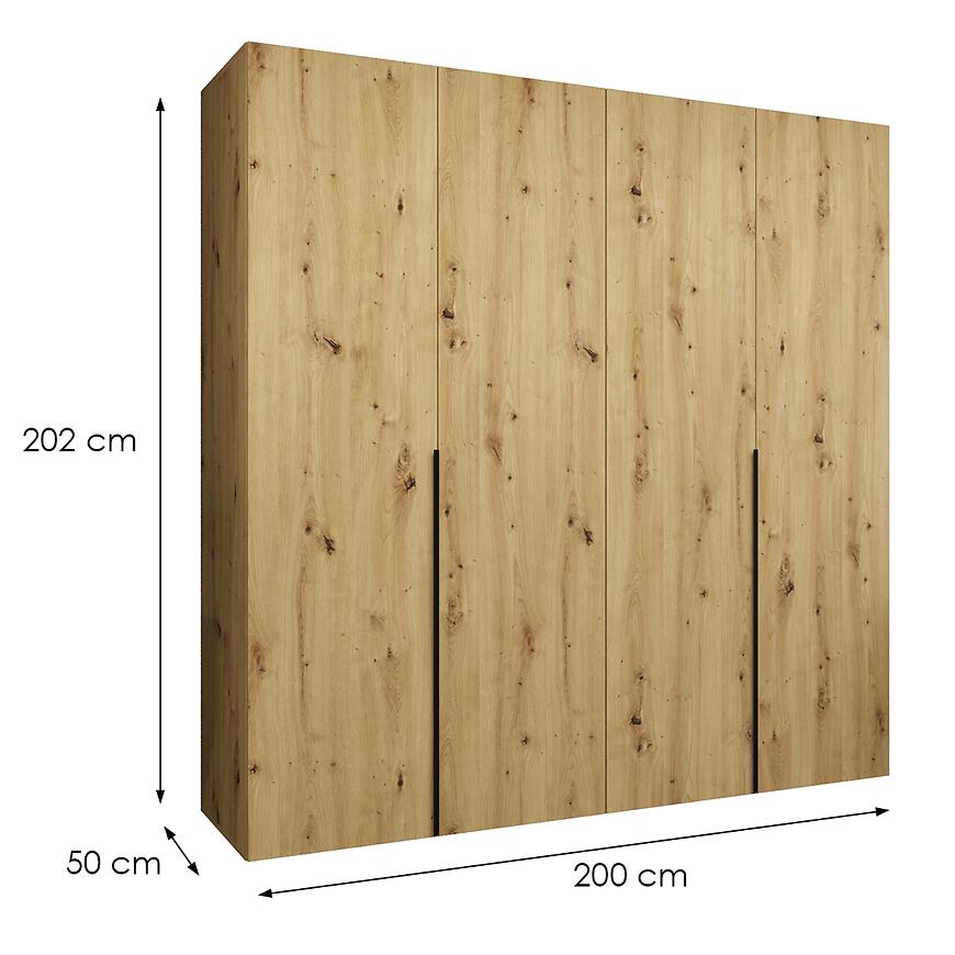 Szafa Alicante I 200 artisan/czarny to propozycja dla osób poszukujących pojemnej i estetycznej szafy do nowoczesnych wnętrz. Szerokość 200 cm, wysokość 202 cm oraz głębokość 50 cm sprawiają, że mebel doskonale sprawdzi się zarówno w sypialni, jak i w garderobie czy przestronnym przedpokoju. Prosta bryła i matowe wykończenie podkreślają nowoczesny styl, dzięki czemu szafa Alicante I 200 harmonijnie wpisuje się w aktualne trendy aranżacyjne. To szafa 4-drzwiowa z klasycznymi drzwiami, zaprojektowana z myślą o wygodnym przechowywaniu odzieży i dodatków, bez zbędnych elementów wizualnych, takich jak lustro.