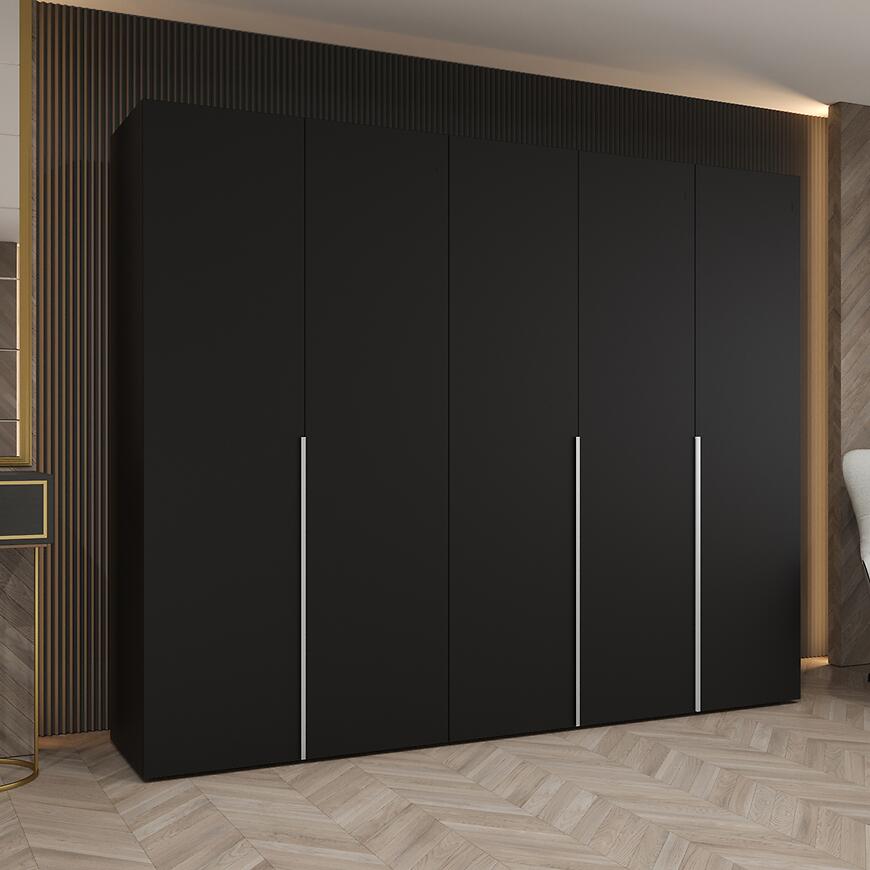 Szafa Alicante I 250 czarny/srebrny to propozycja dla osób poszukujących dużej, solidnej i estetycznej szafy do sypialni, garderoby lub przestronnego przedpokoju. Model z kolekcji ALICANTE łączy nowoczesny styl z prostą formą, która dobrze komponuje się zarówno z minimalistycznymi, jak i bardziej rozbudowanymi aranżacjami wnętrz. Szerokość 250 cm pozwala na wygodne przechowywanie odzieży, tekstyliów domowych oraz akcesoriów, a wysokość 202 cm umożliwia maksymalne wykorzystanie przestrzeni w pomieszczeniu. Szafa Alicante I 250 została zaprojektowana z myślą o użytkownikach, którzy cenią porządek, estetykę i trwałość mebli.
