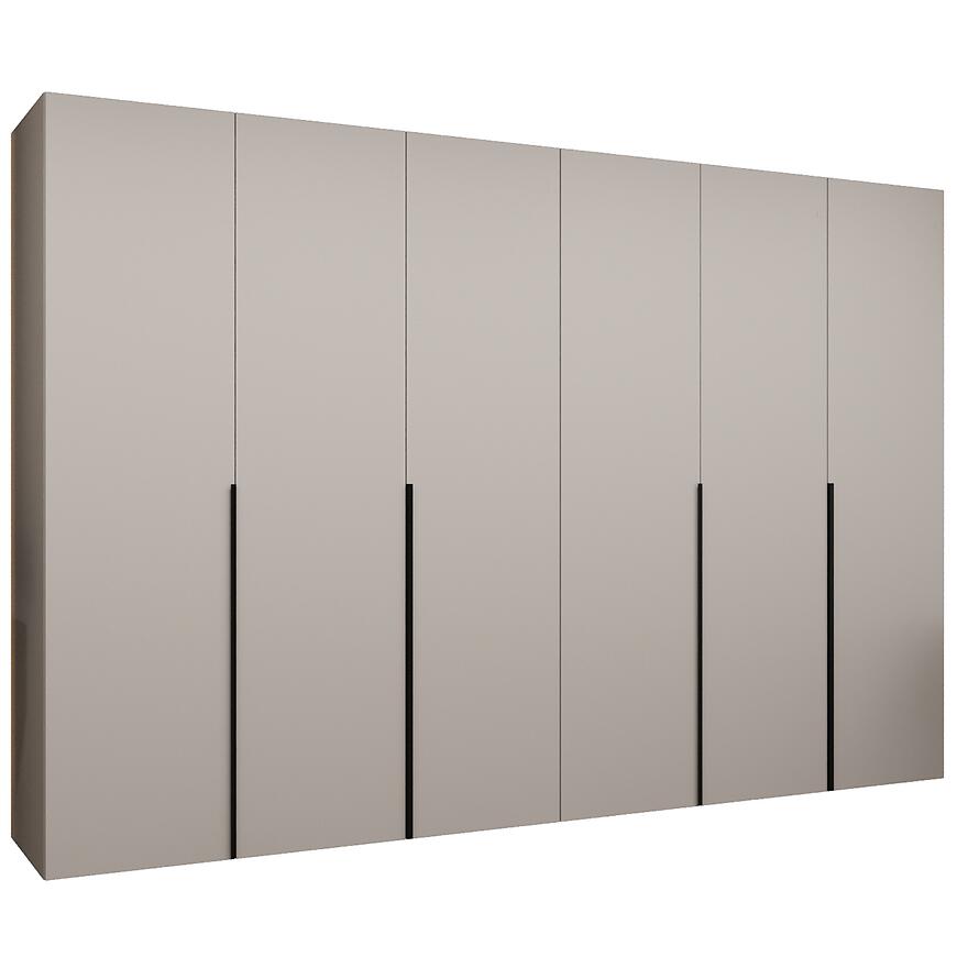 Szafa Alicante I 300 kaszmir/czarny to propozycja dla osób, które poszukują dużej, estetycznej i dobrze zaprojektowanej szafy do sypialni, garderoby lub przestronnego przedpokoju. Szerokość 300 cm zapewnia bardzo dużą przestrzeń do przechowywania odzieży, dodatków i tekstyliów domowych, co czyni ten model doskonałym wyborem do wnętrz, w których liczy się porządek oraz ergonomiczne zagospodarowanie miejsca. Prosta bryła i nowoczesny styl sprawiają, że szafa Alicante I 300 dobrze komponuje się zarówno z jasnymi, jak i ciemniejszymi aranżacjami wnętrz.