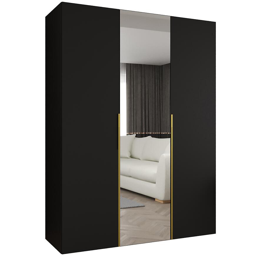 Szafa Alicante II 150 czarny/złoty to propozycja dla osób poszukujących pojemnej i estetycznej szafy, która doskonale wpisuje się w nowoczesne aranżacje wnętrz. Model z kolekcji ALICANTE łączy prostą formę z praktycznymi rozwiązaniami, oferując wygodną przestrzeń do przechowywania ubrań i dodatków. Szerokość 150 cm, wysokość 202 cm oraz głębokość 50 cm sprawiają, że szafa Alicante II 150 dobrze sprawdzi się zarówno w sypialni, jak i w przedpokoju, nie przytłaczając wnętrza, a jednocześnie zapewniając odpowiednią pojemność. Dzięki klasycznym drzwiom i nowoczesnemu stylowi mebel ten łatwo dopasować do wielu aranżacji, od minimalistycznych po bardziej rozbudowane.