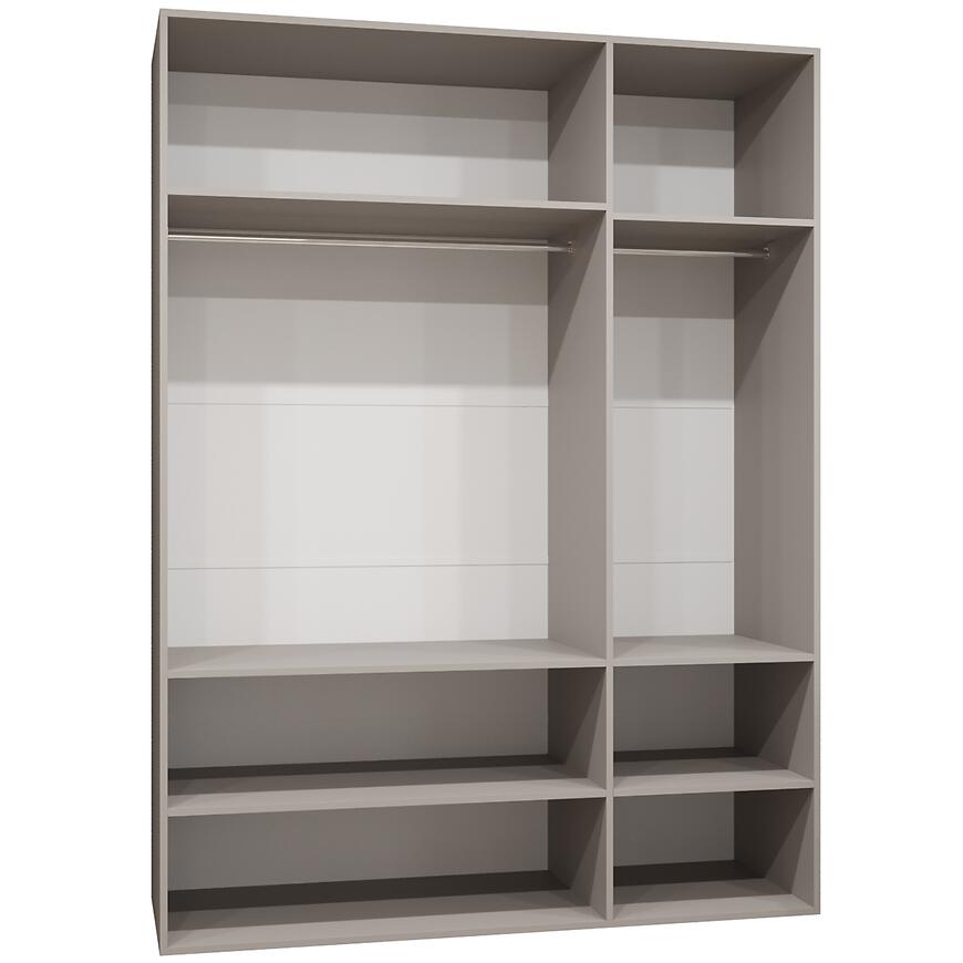 Korpus oraz fronty szafy Alicante II 150 wykonane są z płyty wiórowej laminowanej, co zapewnia odporność na zarysowania oraz trwałość przez długi czas użytkowania. Laminowana powierzchnia dobrze znosi codzienne użytkowanie i zachowuje estetyczny wygląd nawet przy intensywnej eksploatacji. Cała konstrukcja waży 103,8 kg, co świadczy o solidnym wykonaniu i stabilności mebla po złożeniu. Szafa wymaga samodzielnego montażu, jednak przemyślana konstrukcja pozwala na sprawne złożenie zgodnie z instrukcją. Brak wbudowanego oświetlenia daje możliwość dopasowania własnych źródeł światła w pomieszczeniu, zgodnie z indywidualnymi potrzebami.