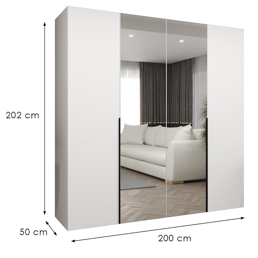 Szafa Alicante II 200 biały/czarny z kolekcji ALICANTE to propozycja dla osób poszukujących pojemnej, estetycznej i dobrze zaprojektowanej szafy do sypialni, przedpokoju lub garderoby. Szerokość 200 cm, wysokość 202 cm oraz głębokość 50 cm sprawiają, że mebel oferuje dużą przestrzeń do przechowywania ubrań, a jednocześnie nie dominuje wizualnie wnętrza. Prosty kształt i nowoczesny styl czynią tę szafę uniwersalnym elementem aranżacji, który łatwo dopasować do różnych koncepcji wystroju. Obecność lustra na frontach optycznie powiększa pomieszczenie i zwiększa komfort codziennego użytkowania, szczególnie w mniejszych wnętrzach.