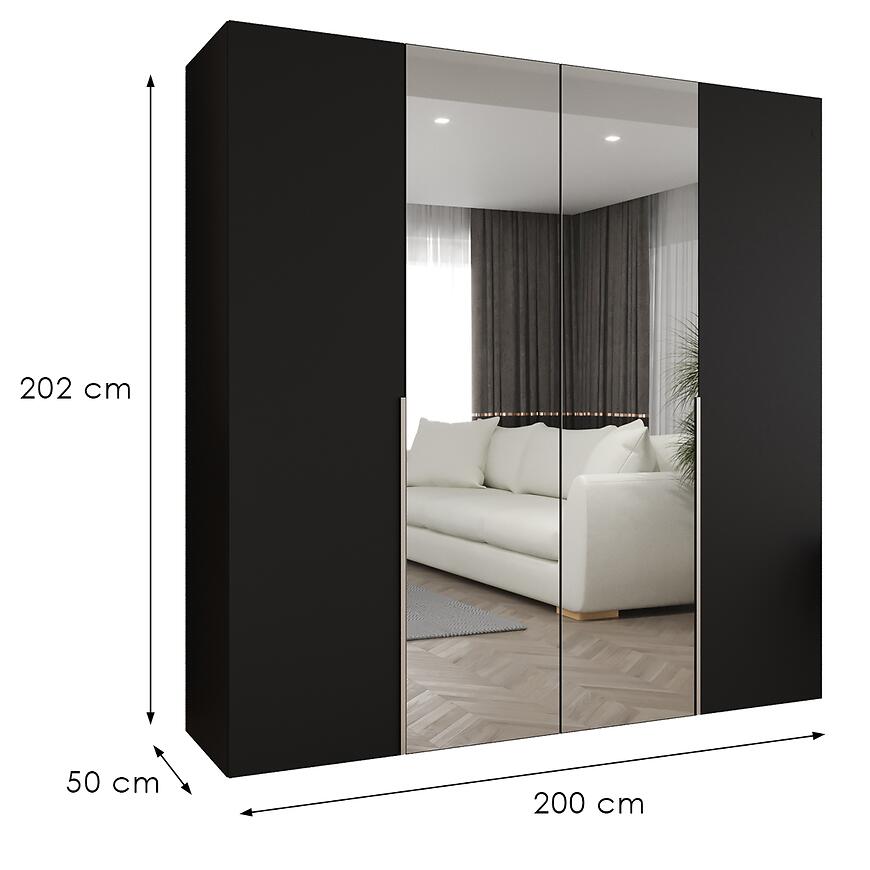 Szafa Alicante II 200 czarny/srebrny z kolekcji ALICANTE to propozycja dla osób poszukujących pojemnej, estetycznej i dobrze zaprojektowanej szafy do sypialni, przedpokoju lub garderoby. Szerokość 200 cm, wysokość 202 cm oraz głębokość 50 cm sprawiają, że mebel oferuje dużą przestrzeń do przechowywania ubrań, a jednocześnie nie dominuje wizualnie wnętrza. Prosty kształt i nowoczesny styl czynią tę szafę uniwersalnym elementem aranżacji, który łatwo dopasować do różnych koncepcji wystroju. Obecność lustra na frontach optycznie powiększa pomieszczenie i zwiększa komfort codziennego użytkowania, szczególnie w mniejszych wnętrzach.
