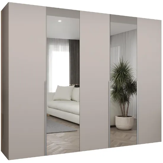 Szafa Alicante II 250 kaszmir/srebrny to propozycja dla osób poszukujących pojemnej, estetycznej i trwałej szafy do sypialni, garderoby lub przestronnego przedpokoju. Dzięki szerokości 250 cm mebel zapewnia dużą ilość miejsca do przechowywania ubrań, dodatków oraz tekstyliów domowych, jednocześnie zachowując nowoczesny i uporządkowany wygląd. Prosta bryła oraz klasyczne drzwi sprawiają, że szafa Alicante II 250 doskonale wpisuje się w aktualne trendy aranżacyjne i dobrze komponuje się z innymi meblami w stylu nowoczesnym.
