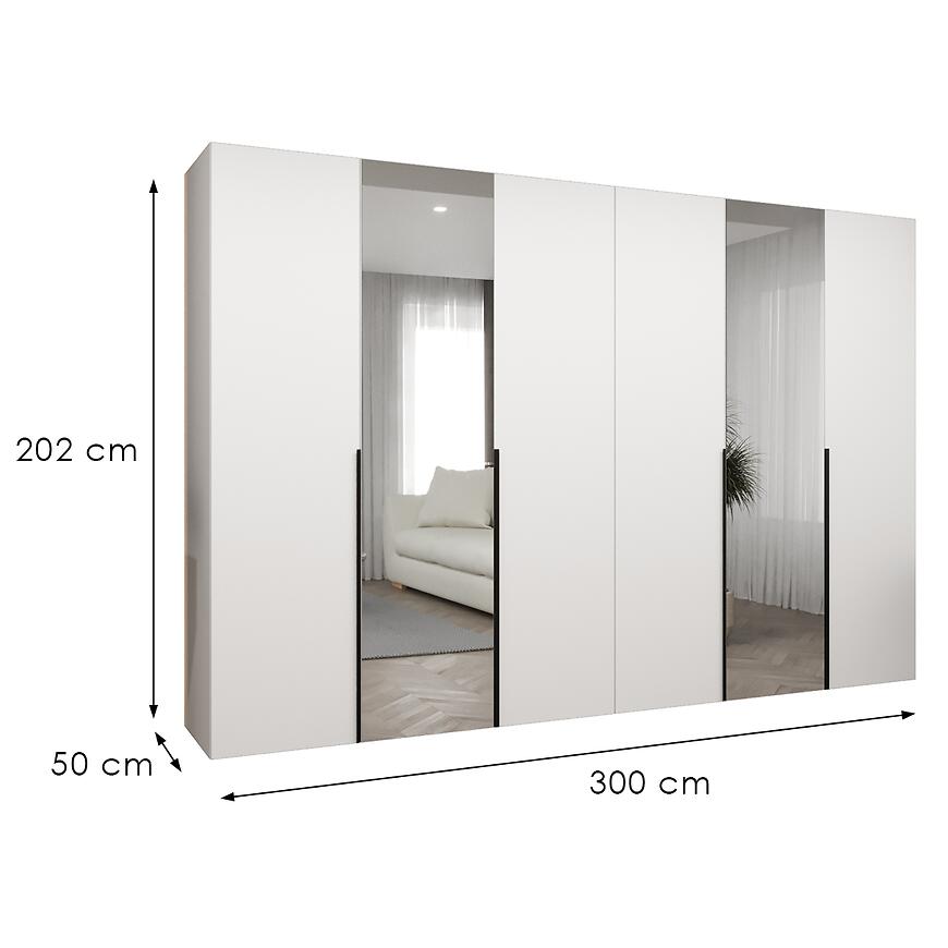 Szafa Alicante II 300 biały/czarny z kolekcji ALICANTE to propozycja dla osób poszukujących dużej, pojemnej i estetycznej szafy do nowoczesnych wnętrz. Szerokość 300 cm sprawia, że model ten doskonale sprawdzi się zarówno w przestronnej sypialni, jak i w garderobie lub dużym przedpokoju. Prosta forma, klasyczne drzwi oraz matowe wykończenie nadają meblowi elegancki wygląd, który łatwo dopasować do różnych aranżacji. Dzięki zastosowaniu lustra szafa Alicante II 300 optycznie powiększa pomieszczenie i zwiększa jego funkcjonalność, co jest szczególnie istotne w codziennym użytkowaniu.