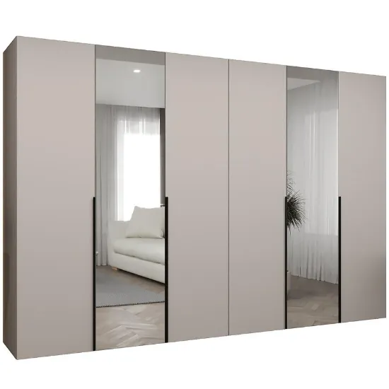 Szafa Alicante II 300 kaszmir/czarny z kolekcji ALICANTE to propozycja dla osób poszukujących dużej, pojemnej i estetycznej szafy do nowoczesnych wnętrz. Szerokość 300 cm sprawia, że model ten doskonale sprawdzi się zarówno w przestronnej sypialni, jak i w garderobie lub dużym przedpokoju. Prosta forma, klasyczne drzwi oraz matowe wykończenie nadają meblowi elegancki wygląd, który łatwo dopasować do różnych aranżacji. Dzięki zastosowaniu lustra szafa Alicante II 300 optycznie powiększa pomieszczenie i zwiększa jego funkcjonalność, co jest szczególnie istotne w codziennym użytkowaniu.