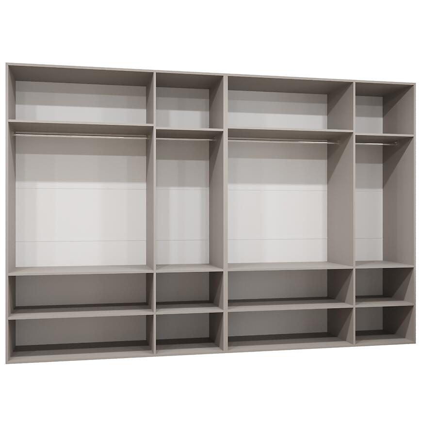 Korpus oraz fronty szafy Alicante II 300 wykonane są z płyty wiórowej laminowanej, co zapewnia trwałość, odporność na codzienne użytkowanie oraz łatwość w utrzymaniu czystości. Matowe wykończenie nadaje meblowi subtelny, nowoczesny charakter i ogranicza widoczność odcisków palców. Waga szafy wynosi 209,5 kg, co świadczy o masywnej i stabilnej konstrukcji. Model nie posiada wbudowanego oświetlenia, dzięki czemu użytkownik ma pełną swobodę w doborze dodatkowych źródeł światła wewnątrz lub wokół mebla.