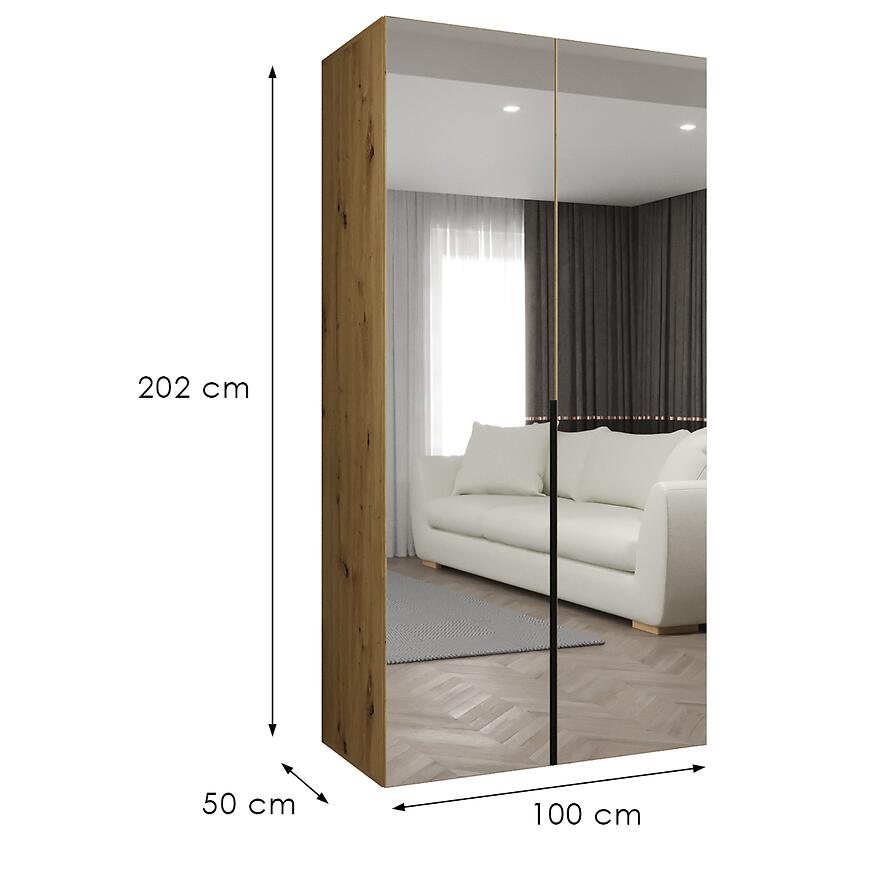 Szafa Alicante III 100 artisan/srebrny to propozycja dla osób, które poszukują estetycznego i praktycznego mebla do przechowywania ubrań oraz dodatków. Dzięki szerokości 100 cm, wysokości 202 cm i głębokości 50 cm szafa doskonale sprawdzi się zarówno w sypialni, jak i w przedpokoju czy garderobie. Prosta bryła, klasyczne drzwi oraz nowoczesny styl sprawiają, że model z kolekcji ALICANTE łatwo dopasować do wielu aranżacji wnętrz. Zastosowanie lustra na froncie nie tylko podnosi walory wizualne mebla, ale również optycznie powiększa przestrzeń, co jest szczególnie istotne w mniejszych pomieszczeniach.