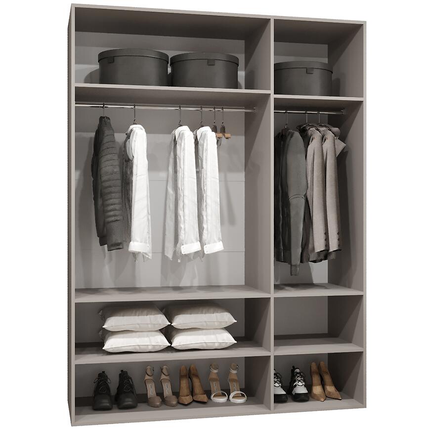 Dzięki przemyślanym wymiarom szafa Alicante III 150 sprawdzi się jako szafa do sypialni, garderoby lub większego przedpokoju. Szerokość 150 cm umożliwia wygodne rozmieszczenie odzieży, a wysokość 202 cm pozwala maksymalnie wykorzystać przestrzeń w pionie. Głębokość 50 cm jest optymalna do przechowywania ubrań na wieszakach i półkach, bez zajmowania nadmiernej ilości miejsca w pomieszczeniu. Prosta bryła ułatwia ustawienie szafy przy ścianie lub w zabudowie meblowej, co jest ważne przy planowaniu funkcjonalnego układu wnętrza.