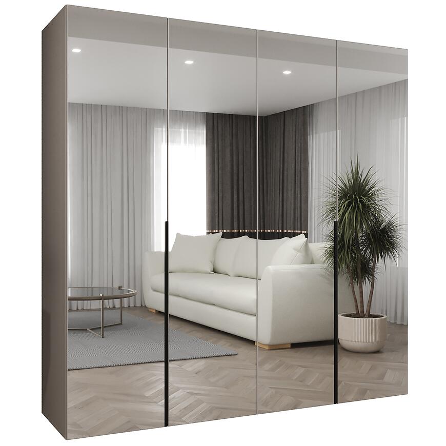 Szafa Alicante III 200 kaszmir/czarny to propozycja dla osób poszukujących pojemnej i estetycznej szafy do sypialni, garderoby lub przestronnego przedpokoju. Model o szerokości 200 cm, wysokości 202 cm i głębokości 50 cm został zaprojektowany z myślą o maksymalnym wykorzystaniu przestrzeni przy zachowaniu nowoczesnej formy. Prosty kształt bryły sprawia, że szafa Alicante III 200 dobrze komponuje się zarówno z minimalistycznymi, jak i bardziej rozbudowanymi aranżacjami wnętrz. Czterodrzwiowa konstrukcja ułatwia organizację odzieży, a lustro umieszczone na froncie optycznie powiększa pomieszczenie i zwiększa jego funkcjonalność.