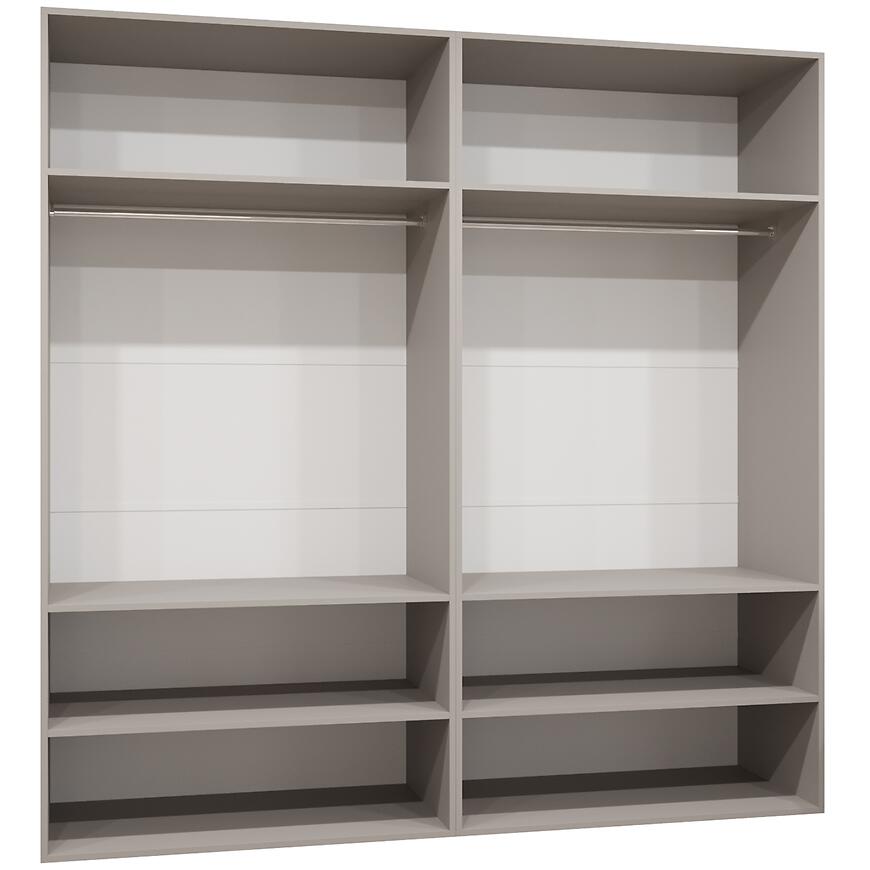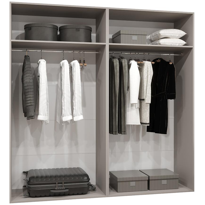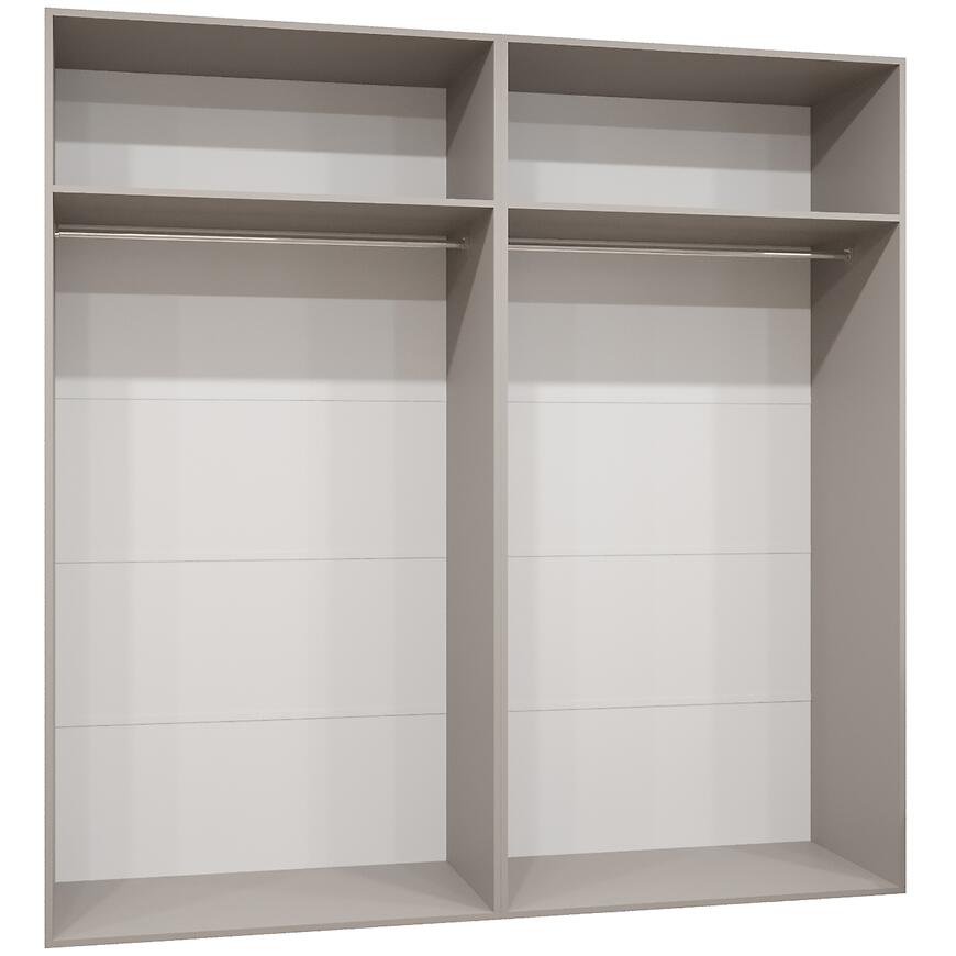 Szafy z lustrem cieszą się dużą popularnością ze względu na swoją użyteczność. W modelu Alicante III 200 lustro pełni funkcję zarówno dekoracyjną, jak i praktyczną. Ułatwia codzienne korzystanie z garderoby, a jednocześnie rozjaśnia i wizualnie powiększa przestrzeń. Matowe wykończenie frontów w połączeniu z lustrem tworzy spójną i nowoczesną całość, która wpisuje się w aktualne trendy aranżacyjne.