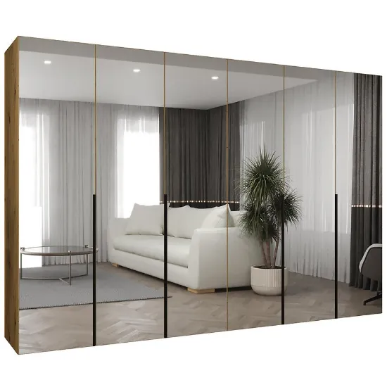 Model Alicante III 300 należy do kolekcji ALICANTE, cenionej za nowoczesne wzornictwo i solidne wykonanie. Zastosowanie klasycznych, kilkudrzwiowych frontów ułatwia dostęp do całej zawartości szafy, co ma szczególne znaczenie przy tak dużej szerokości mebla. Lustro umieszczone na froncie pełni funkcję praktyczną, umożliwiając codzienne korzystanie bez potrzeby montowania dodatkowego lustra w pomieszczeniu, a jednocześnie optycznie powiększa przestrzeń. To rozwiązanie szczególnie dobrze sprawdza się w sypialniach oraz garderobach, gdzie liczy się zarówno ergonomia, jak i estetyka.