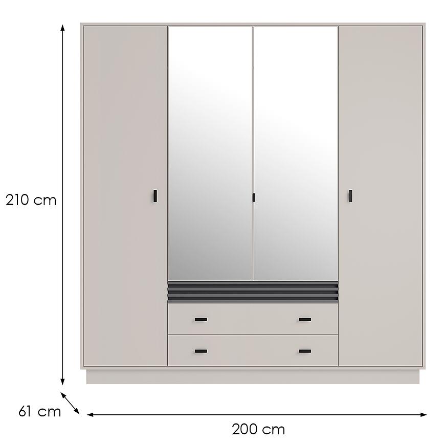 Szafa Allmo Al16 Cashmere łączy nowoczesny wygląd z dużą pojemnością. Kilkudrzwiowa konstrukcja i wbudowane lustro zapewniają wygodę użytkowania, a matowe wykończenie w odcieniu cashmere nadaje szafie elegancki i subtelny charakter, gwarantując trwałość i komfort przez wiele lat.