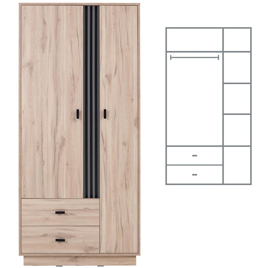 Szafa Allmo w kolorze dąb estana jasny/antracyt to propozycja do pokoju dziennego, ale znajdzie swoje miejsce również w innym pomieszczeniu, jak na przykład - przedpokój czy garderoba. Materiał wykonania to płyta wiórowa laminowana. Nowoczesny styl mebli wpadnie do gustu każdemu, kto poszukuje eleganckiego, klasycznego, a zarazem nowoczesnego umeblowania. Idealnie wpasuje się w większość aranżacji. Przeznaczona do samodzielnego montażu.