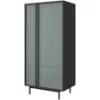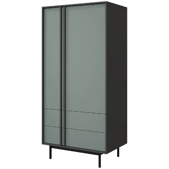 Kolekcja Alsy to propozycja dla osób, które chcą nadać swojemu pokojowi dziennemu wyjątkowy charakter. Połączenie głębokiego zielonego odcienia aloes na frontach z eleganckim antracytem korpusów tworzy wyrazisty kontrast, który staje się centralnym punktem aranżacji. Minimalistyczne formy, matowe wykończenie oraz solidne, wysokie metalowe nóżki sprawiają, że meble prezentują się nowocześnie, a jednocześnie lekko.