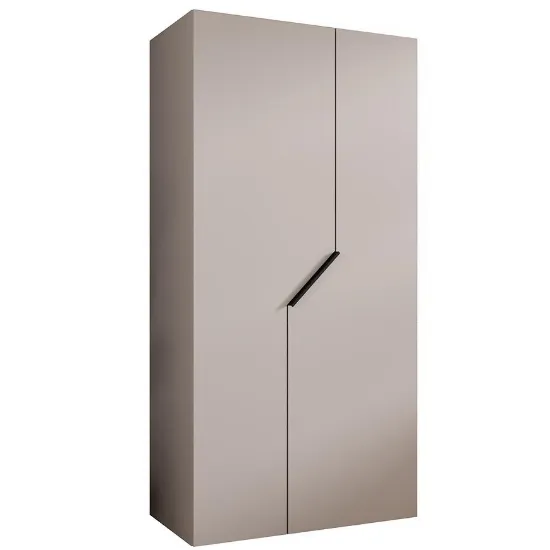 Szafa Andrew 1-100 w kolorze kaszmir/czarny to nowoczesna szafa ubraniowa, która doskonale sprawdzi się w sypialni, garderobie lub pokoju młodzieżowym. Model z kolekcji ANDREW łączy minimalistyczny design z praktycznym układem wnętrza, dzięki czemu pozwala wygodnie przechowywać odzież oraz akcesoria. Szerokość 100 cm, wysokość 202 cm oraz głębokość 52 cm sprawiają, że szafa jest pojemna, a jednocześnie nie zajmuje nadmiernej ilości miejsca w pomieszczeniu. Prosty kształt oraz matowe wykończenie frontów i korpusu podkreślają nowoczesny styl mebla, który dobrze komponuje się z różnymi aranżacjami wnętrz, zarówno minimalistycznymi, jak i klasycznymi.