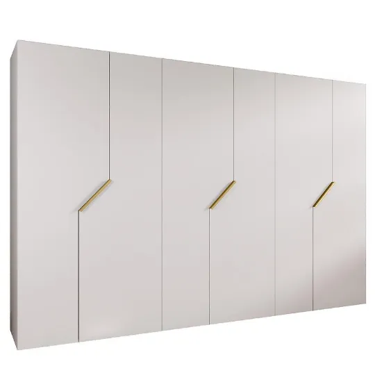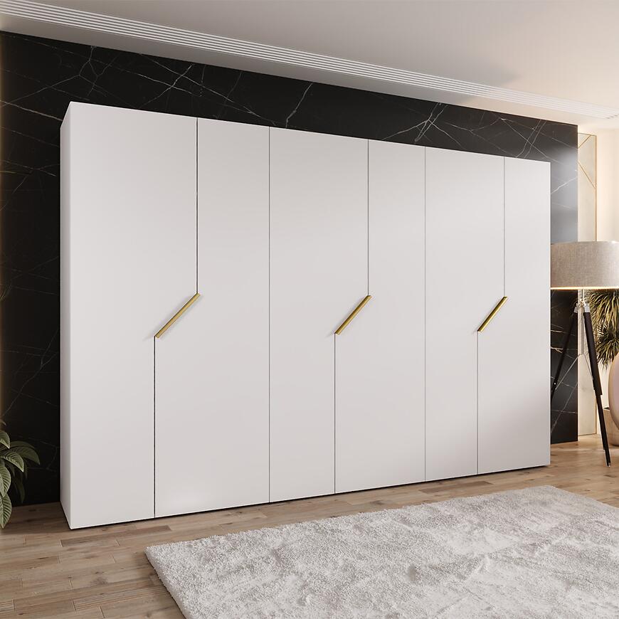 Szafa Andrew 1-300 to przestronna i estetyczna szafa ubraniowa o szerokości 300 cm, zaprojektowana z myślą o wygodnym przechowywaniu odzieży oraz dodatków. Model z kolekcji ANDREW wyróżnia się nowoczesnym designem, minimalistyczną bryłą oraz uniwersalnym białym wybarwieniem, które doskonale komponuje się z różnymi aranżacjami wnętrz. Duża szafa do sypialni lub garderoby zapewnia odpowiednią organizację przestrzeni i pozwala zachować porządek nawet przy większej ilości ubrań. Solidna konstrukcja oraz starannie dobrane materiały wpływają na trwałość mebla i jego estetyczny wygląd przez długi czas użytkowania.