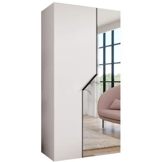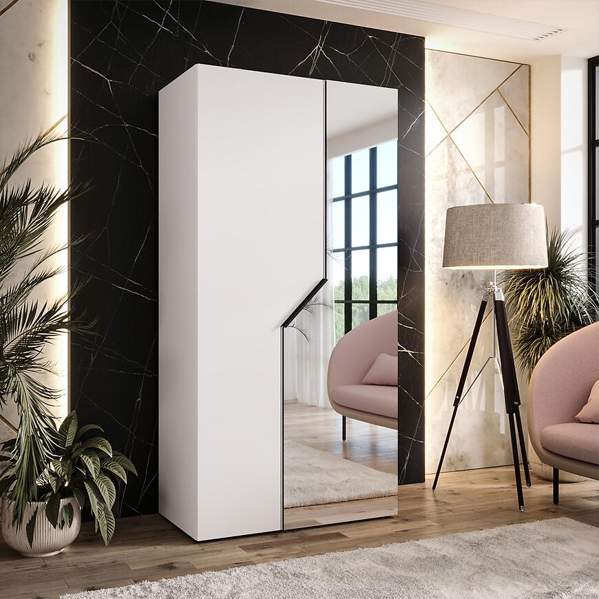 Szafa Andrew 2-100 biała z lustrem – nowoczesna szafa dwudrzwiowa do sypialni i garderoby