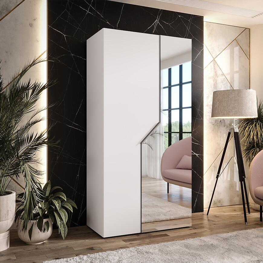 Szafa Andrew 2-100 biała z lustrem – nowoczesna szafa dwudrzwiowa do sypialni i garderoby