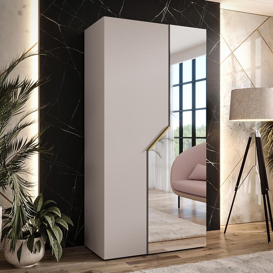 Szafa Andrew 2-100 kaszmir z lustrem – nowoczesna szafa dwudrzwiowa do sypialni i garderoby