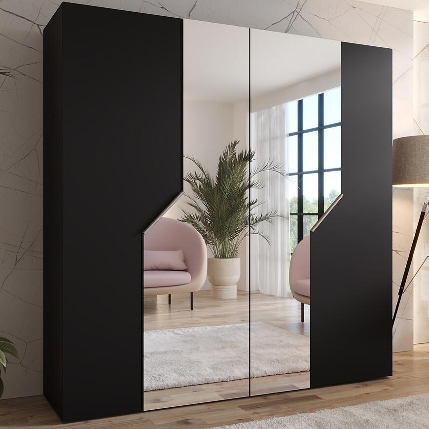 Szafa Andrew 2-200 – nowoczesna czarna szafa z lustrem do sypialni