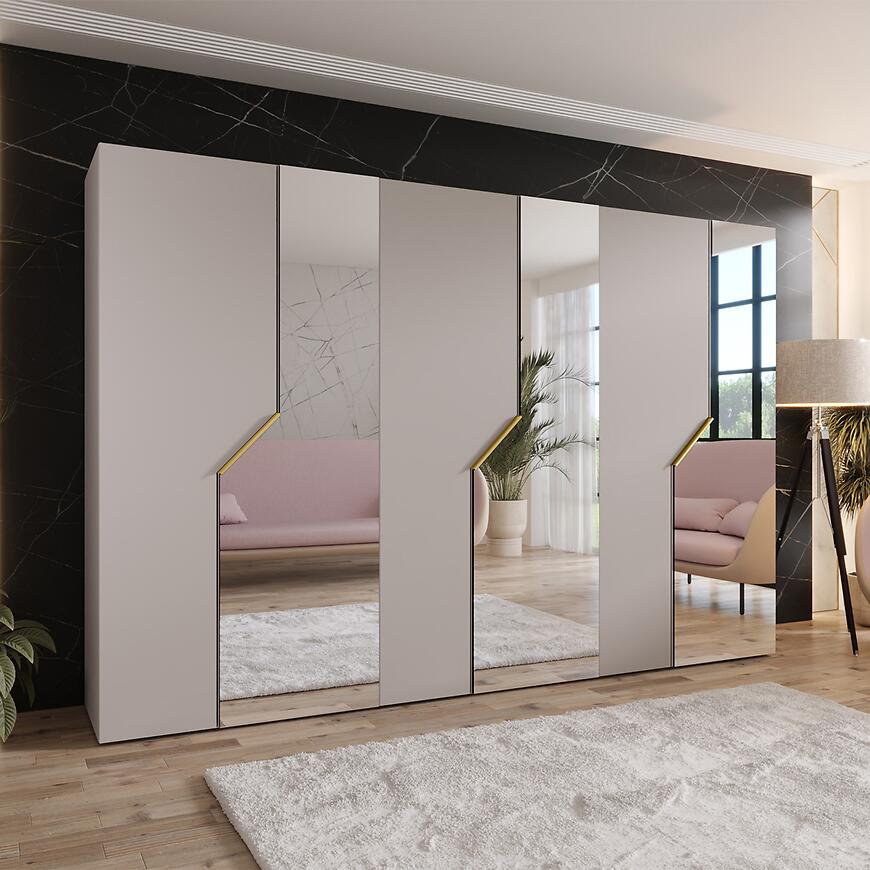 Szafa Andrew 2-300 cm kaszmir z lustrem – nowoczesna szafa do sypialni i garderoby