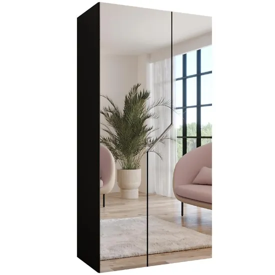 Szafa Andrew 3-100 czarny/kaszmir to elegancka i praktyczna szafa dwudrzwiowa zaprojektowana z myślą o nowoczesnych aranżacjach wnętrz. Model z kolekcji ANDREW wyróżnia się minimalistyczną formą oraz dużym lustrem pokrywającym całą powierzchnię frontu, co nadaje meblowi stylowy i luksusowy charakter. Takie rozwiązanie sprawia, że szafa z lustrem nie tylko spełnia funkcję przechowywania garderoby, ale także staje się dekoracyjnym elementem wyposażenia.