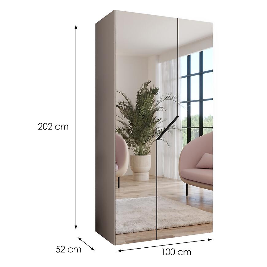 Szafa Andrew 3-100 z lustrem na całym froncie to doskonałe rozwiązanie dla osób szukających pojemnej, estetycznej i funkcjonalnej szafy do sypialni lub przedpokoju. Jej kompaktowa szerokość 100 cm sprawia, że łatwo dopasować ją do mniejszych i średnich pomieszczeń, zachowując jednocześnie wysoką funkcjonalność przechowywania.