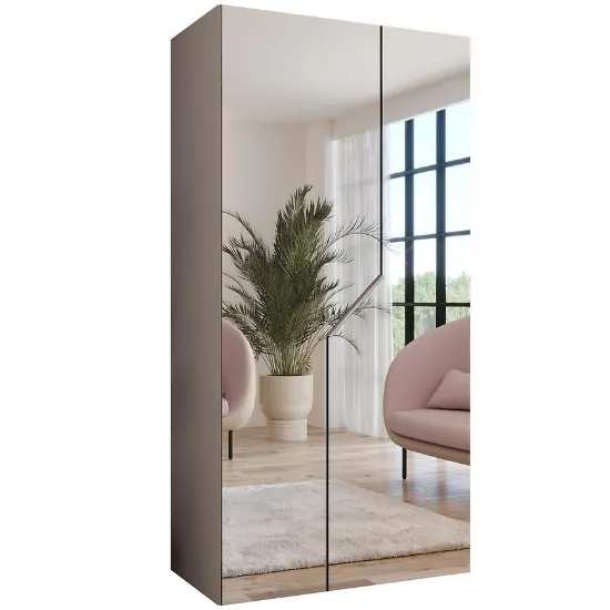Szafa Andrew 3-100 kaszmir/kaszmir to elegancka i praktyczna szafa dwudrzwiowa zaprojektowana z myślą o nowoczesnych aranżacjach wnętrz. Model z kolekcji ANDREW wyróżnia się minimalistyczną formą oraz dużym lustrem pokrywającym całą powierzchnię frontu, co nadaje meblowi stylowy i luksusowy charakter. Takie rozwiązanie sprawia, że szafa z lustrem nie tylko spełnia funkcję przechowywania garderoby, ale także staje się dekoracyjnym elementem wyposażenia.